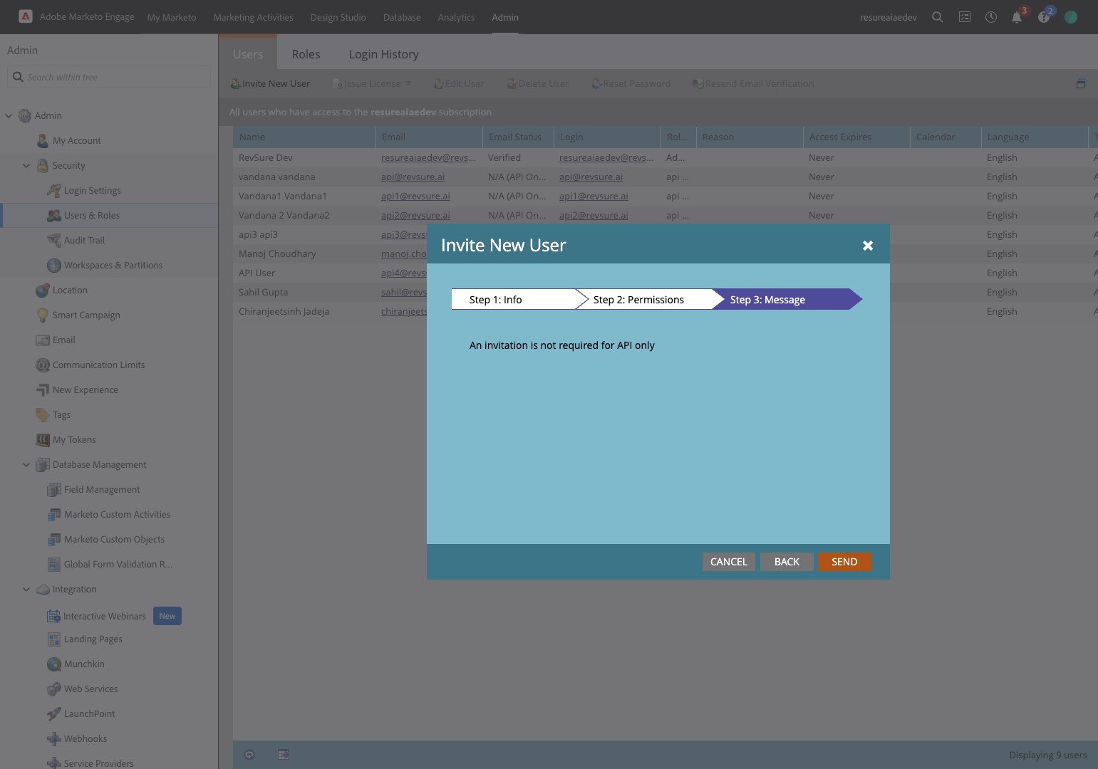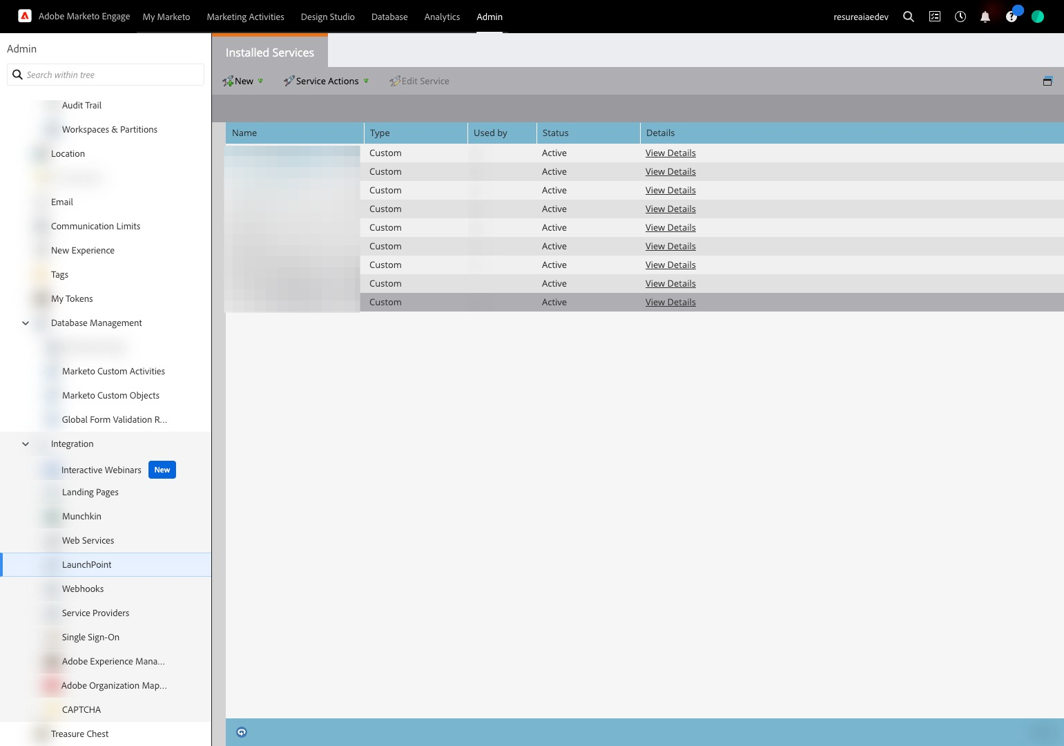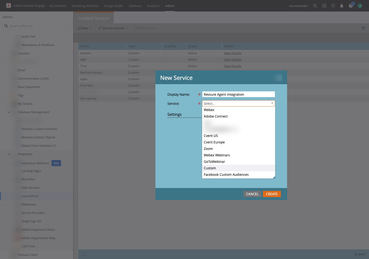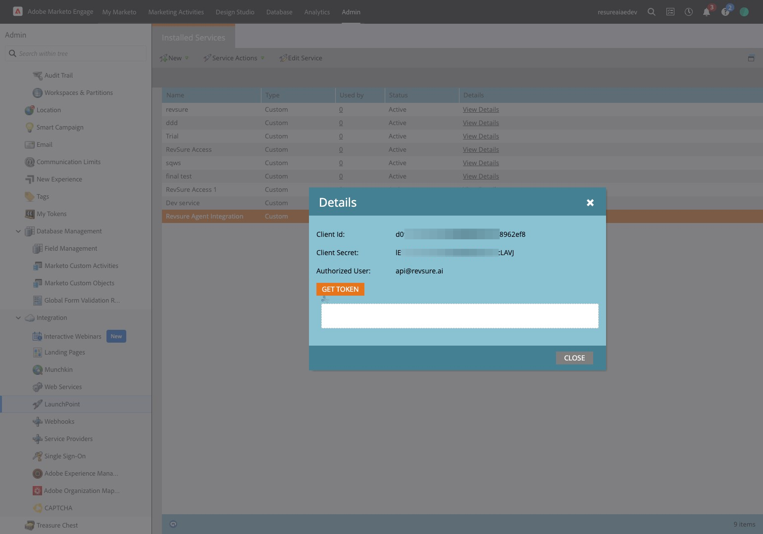 8. Navigate to your Marketo Instance. We will be creating the following : Role, User, Web Service