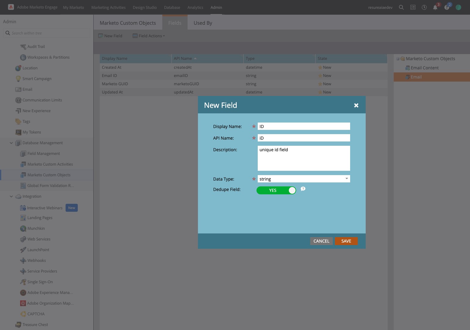 52. Click "Marketo Custom Objects"