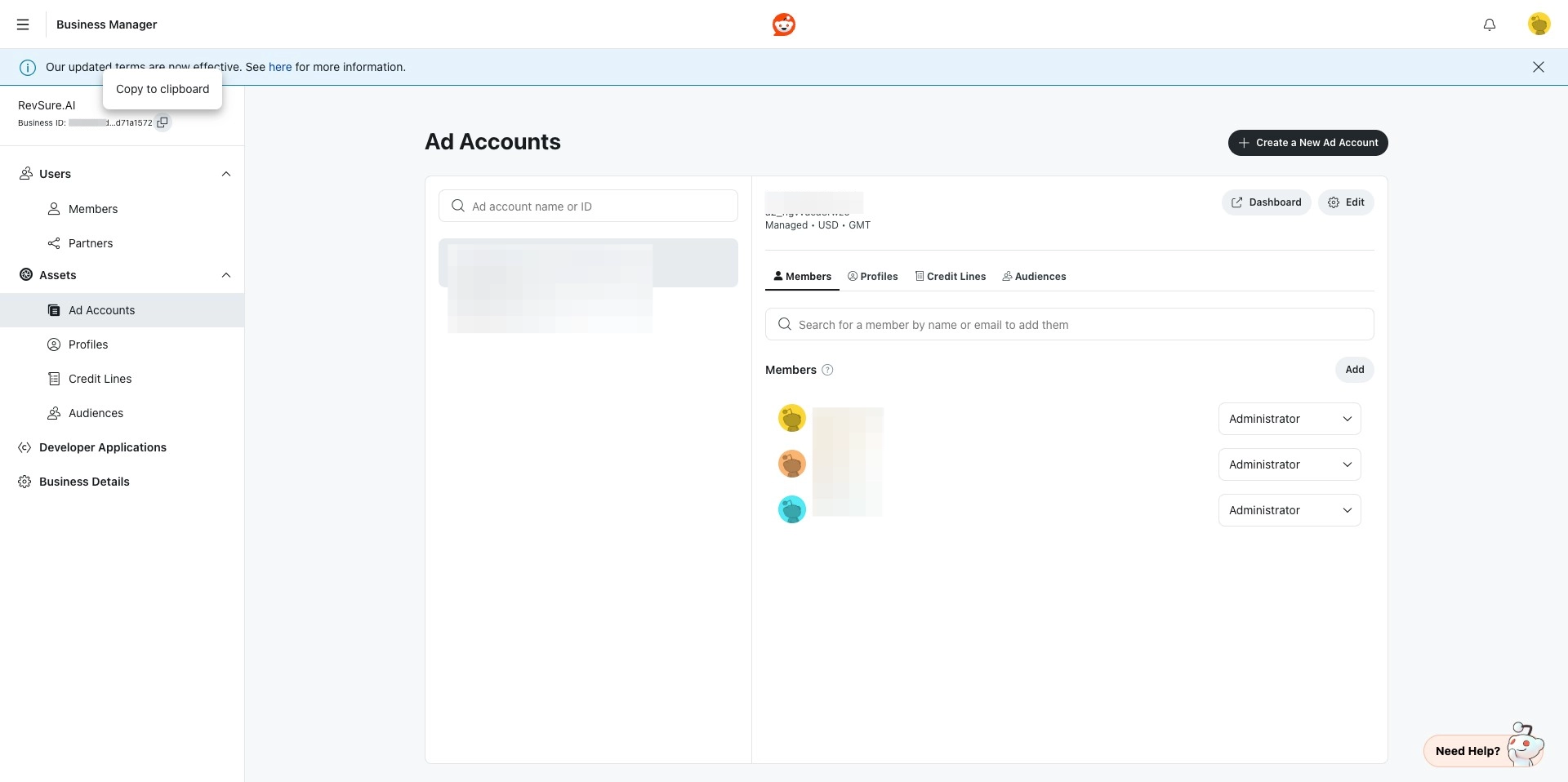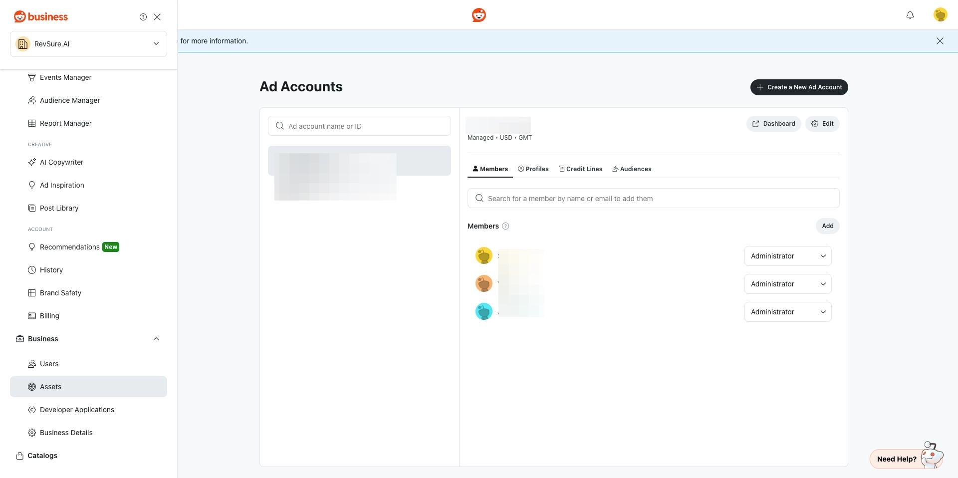 7. Or from your Reddit Ads, from side navigation Business -> Assets