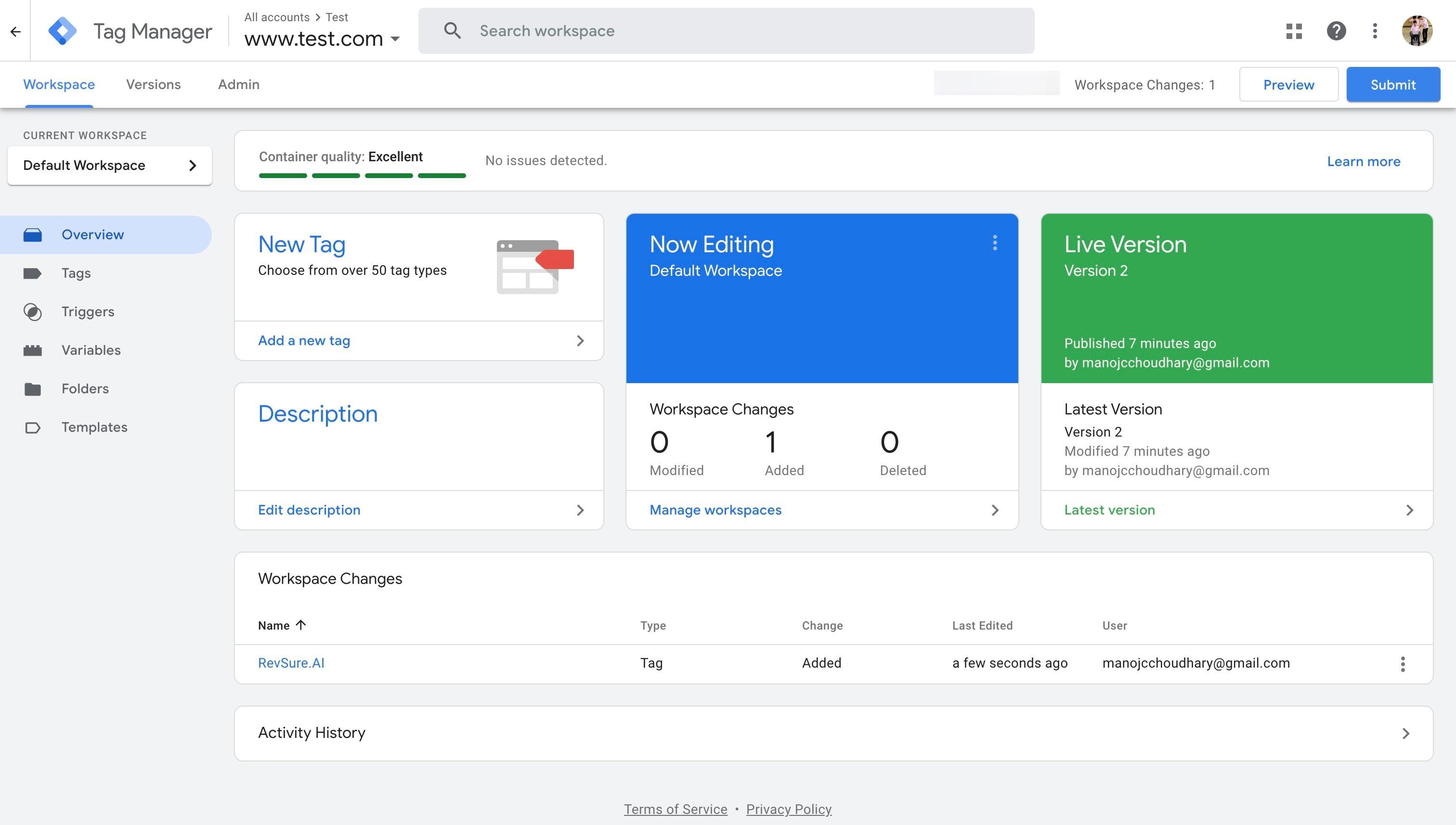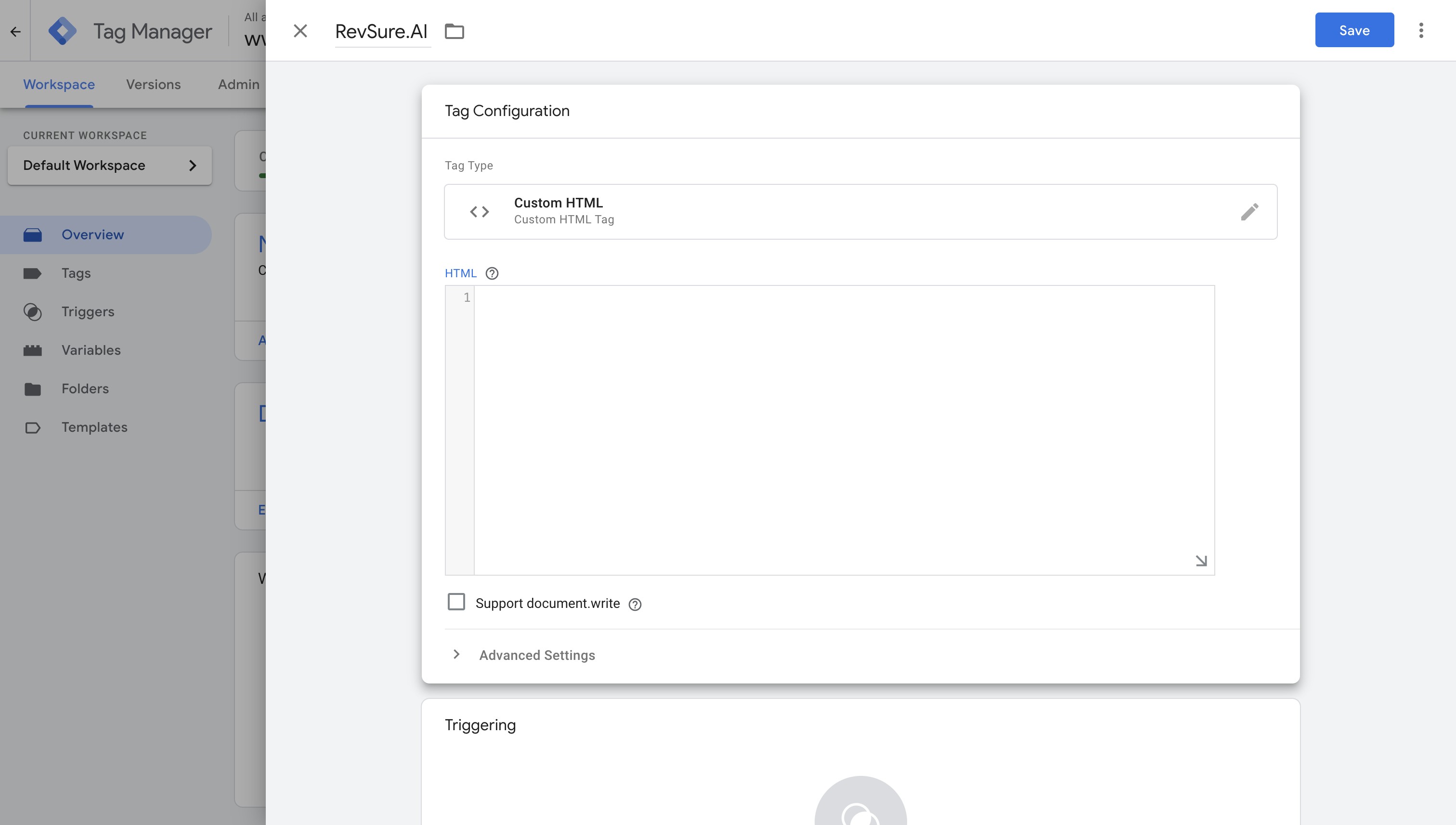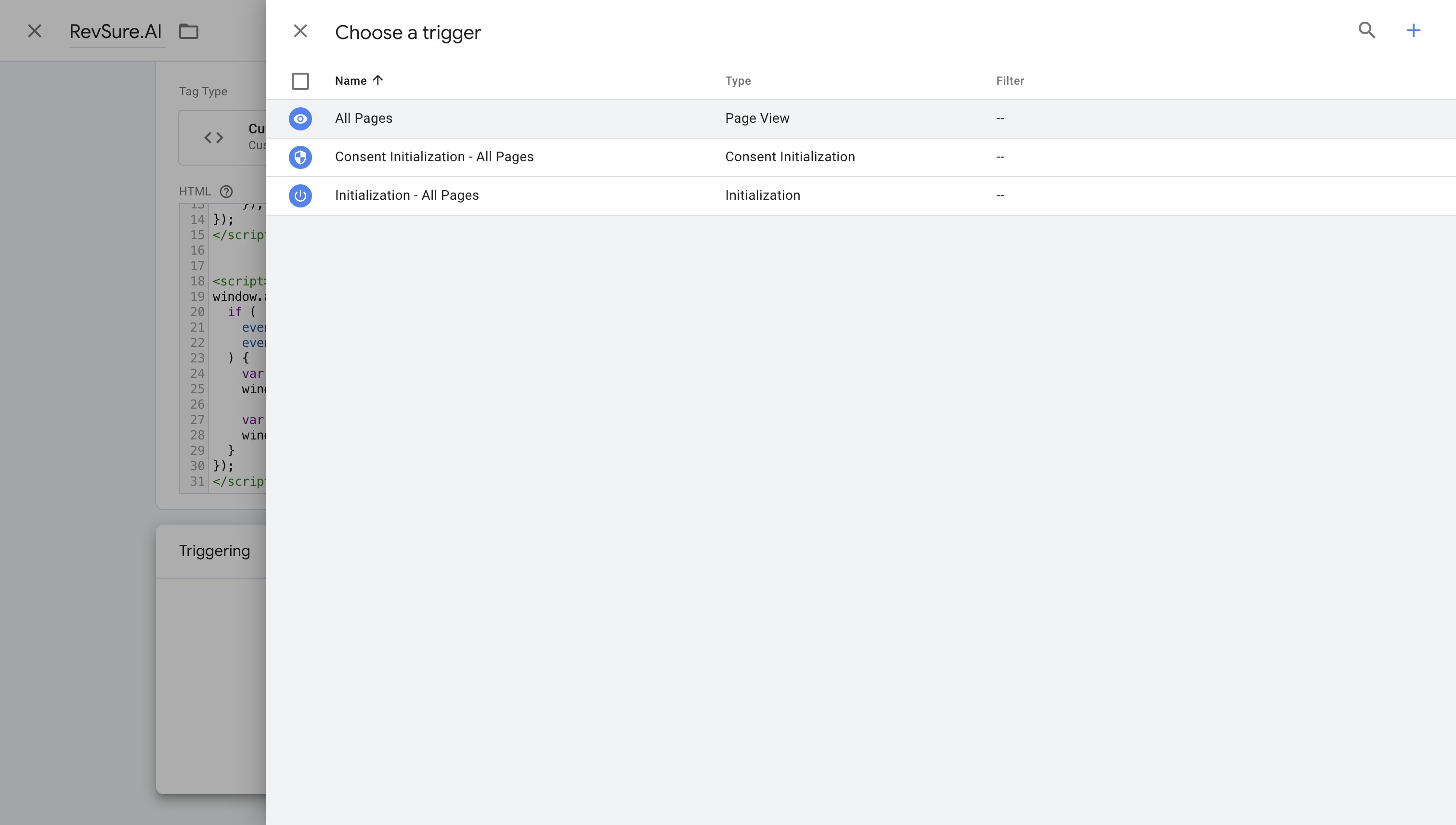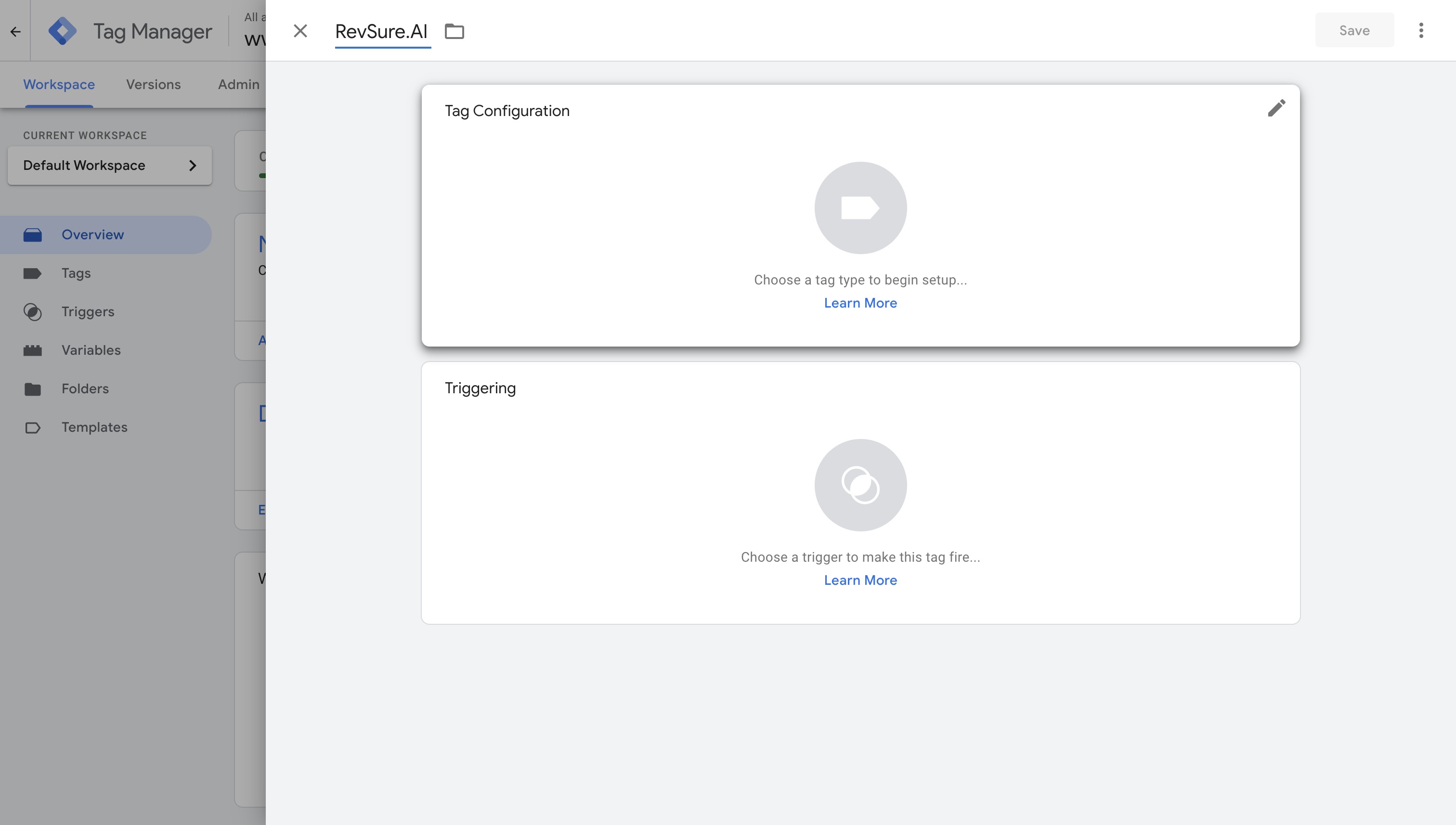 4. Type "RevSure.AI" for Tag Name