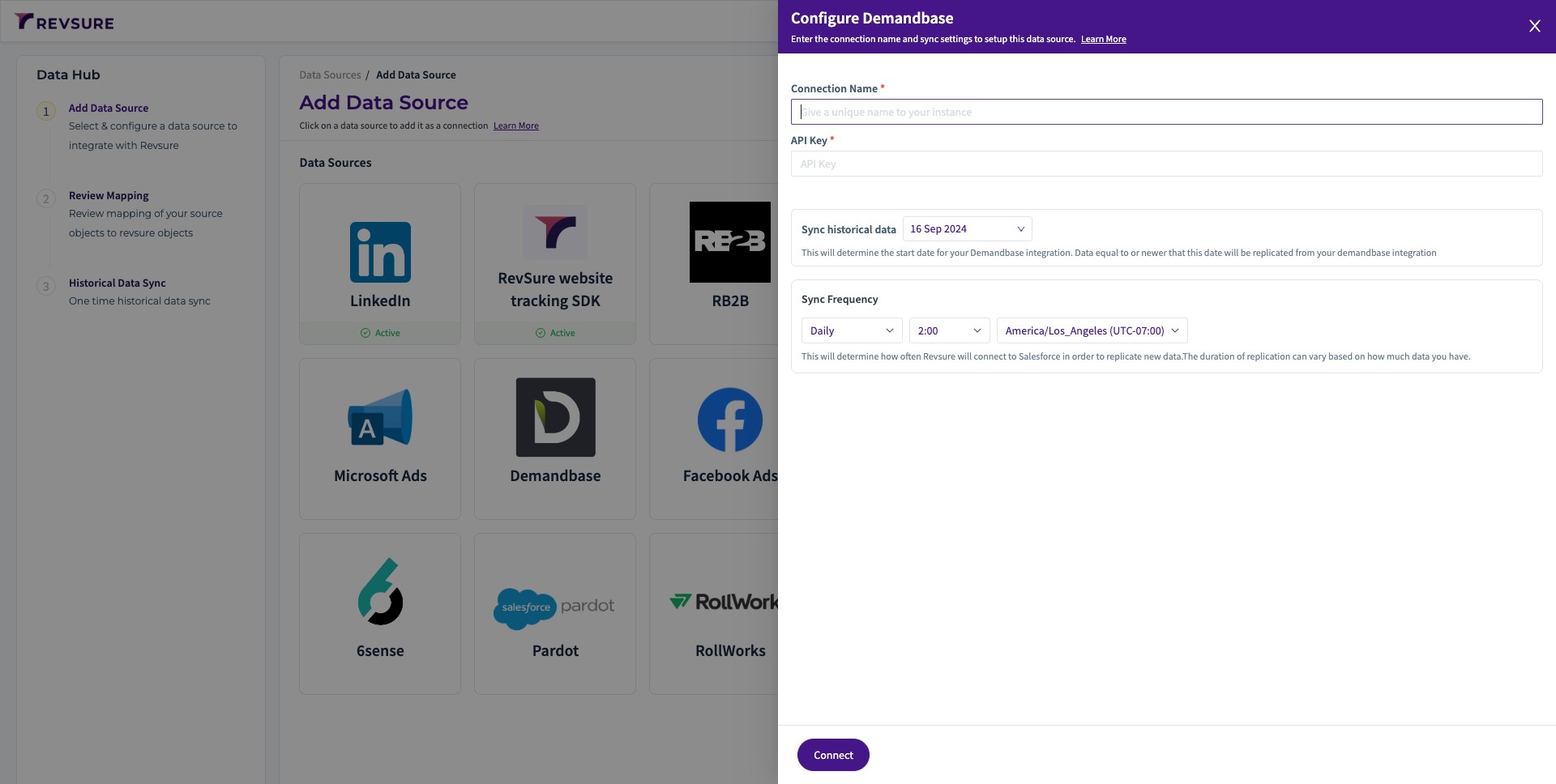 2. Select Demandbase data source, and it will open a sidebar to configure the connection details