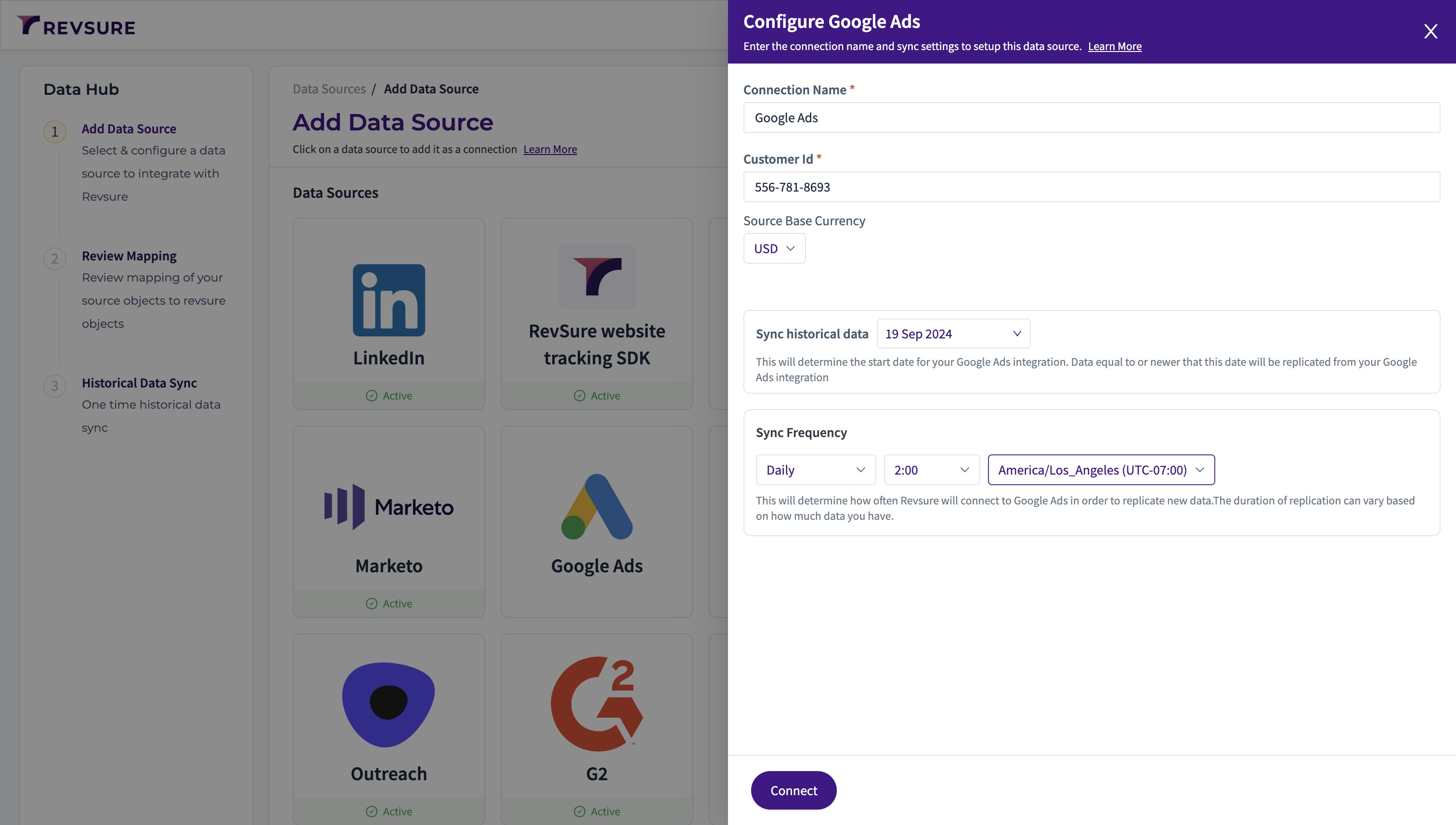 2. Select Google Ads data source, and it will open a sidebar to configure the connection details