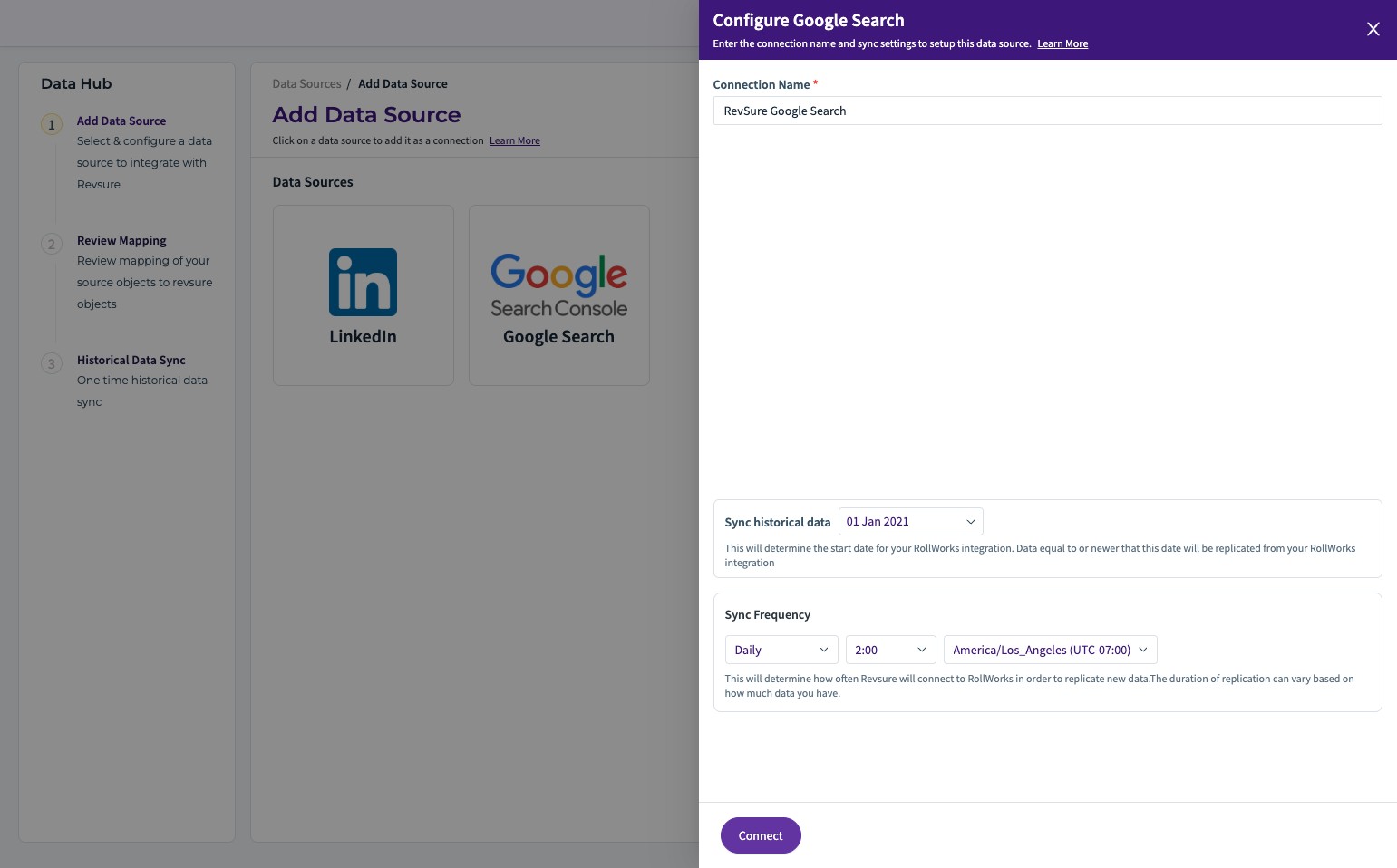 1. Navigate to the Data Hub module in the RevSure account and click on Data Sources