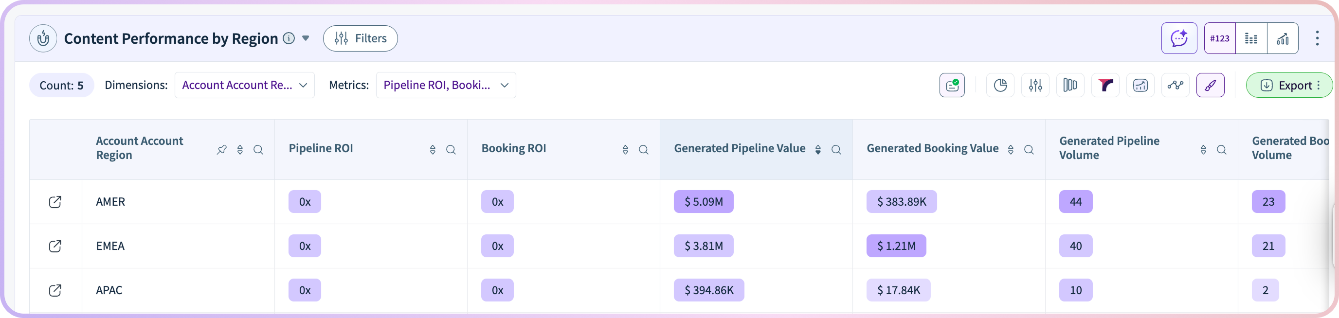 By aligning teams around shared pipeline impact, the dashboard elevates content from a marketing metric to a revenue driver.