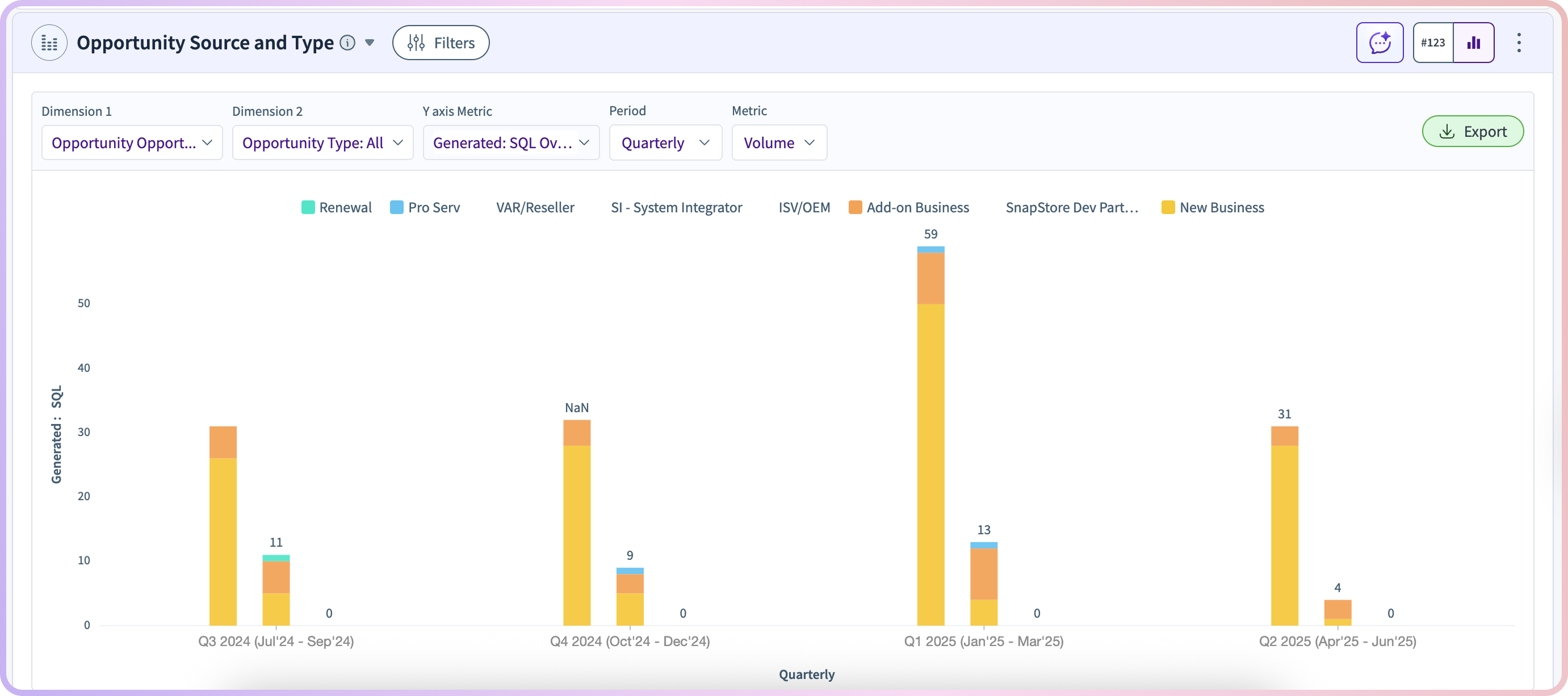 Pipeline by source and opportunity type (inbound, partner, new vs. existing business)