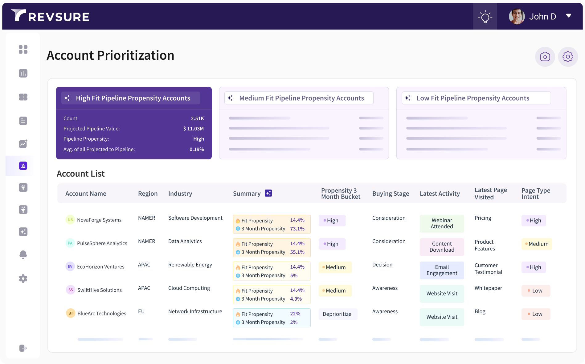 For example, when RevSure’s Account & Lead Prioritization scores flow directly into outreach workflows, high-value accounts get attention at the exact right moment — without manual intervention.
