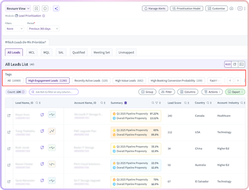 That speed matters because prioritization isn’t a one-time task. It’s a constant workflow. Every day, new leads come in, opportunities evolve, accounts heat up, and engagement shifts. RevSure Custom Tags allow your team to keep up with those changes without slowing down.