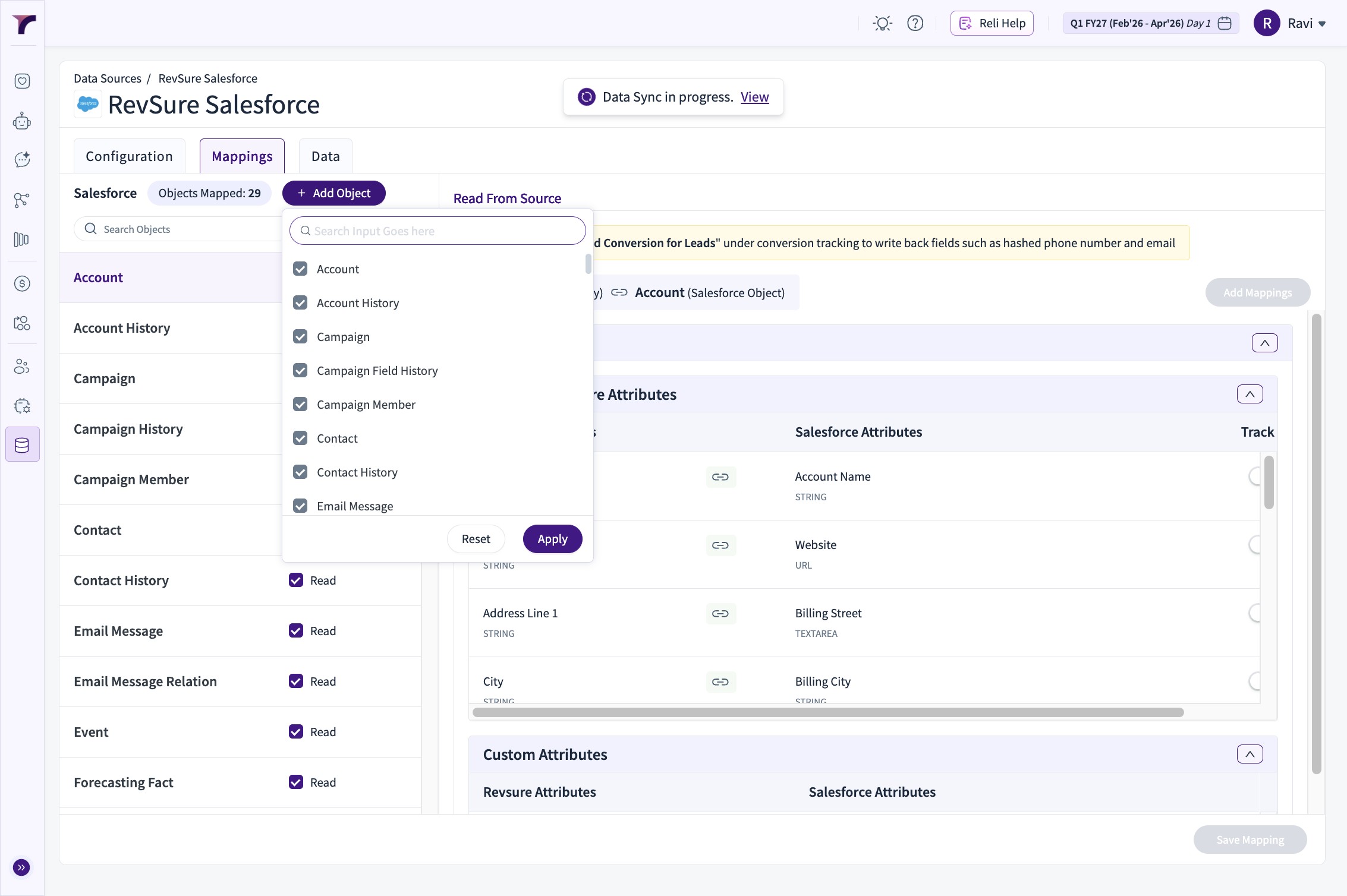 How to Add Objects in RevSure Salesforce Data Connection