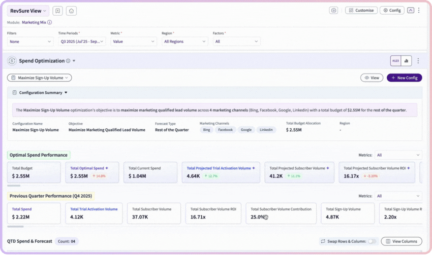 Take the guesswork out of budget allocation. With MMX Hierarchical Planning & Optimization, you can confidently reallocate budgets across channels and regions based on real performance data and predictive ROI.