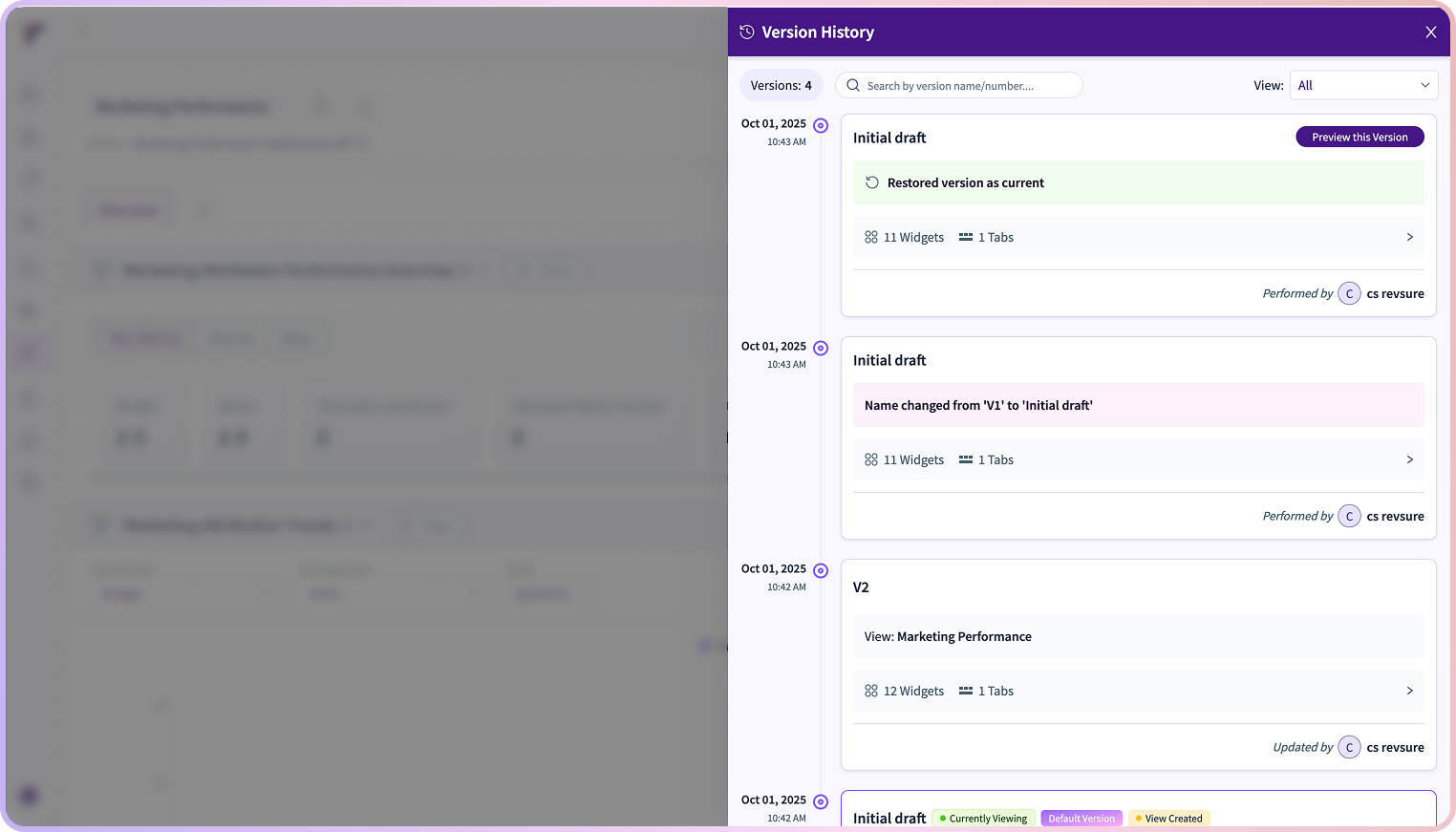 Always know what changed, when, and by whom. With Version Control, track, annotate, and restore previous versions of dashboards and views with ease.
