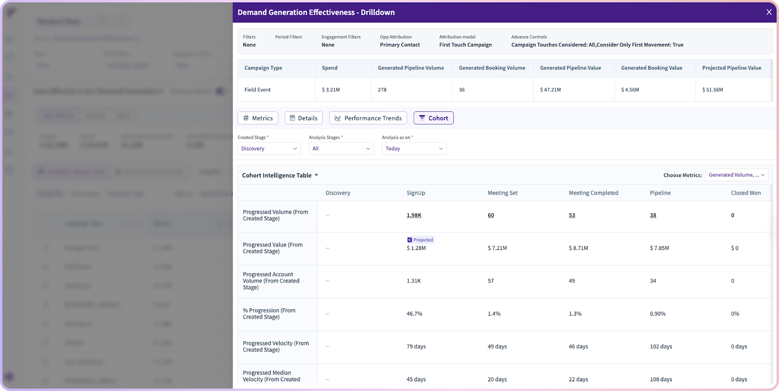 Quickly see how records progress through your funnel and pinpoint what’s working. A new Cohort dropdown lets you drill into Progressed Volume from the Created Stage for sharper insights.