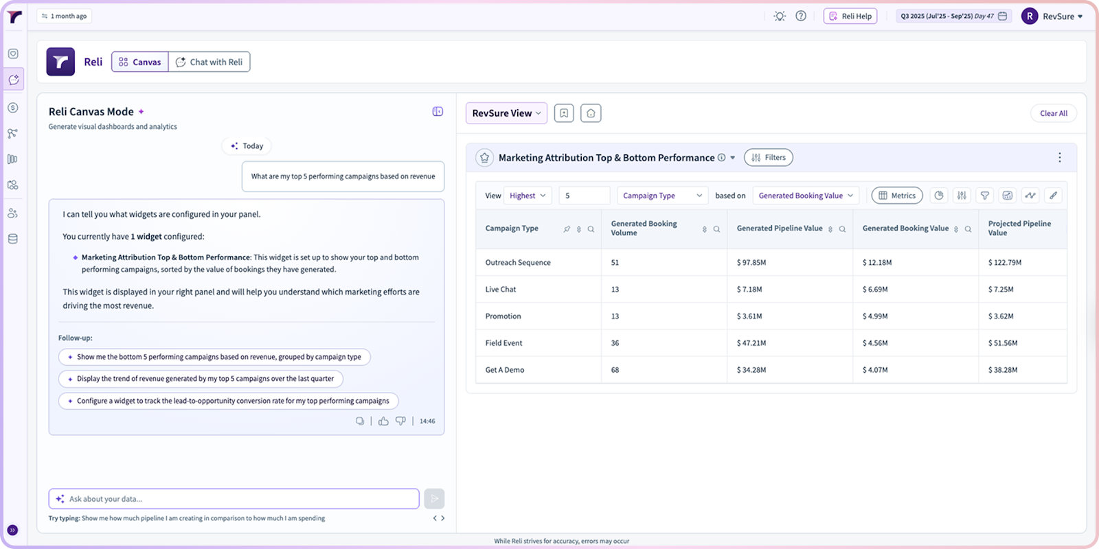 No more manual report-building. With Reli Canvas, you can ask complex questions in natural language and get instant, accurate answers—right inside your workflow.