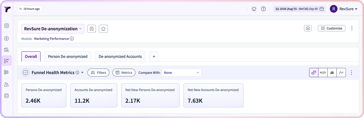 Get deeper visibility into the impact of anonymous visitor identification. We’ve added four new metrics that provide immediate insight into the volume of new identities added to your funnel.