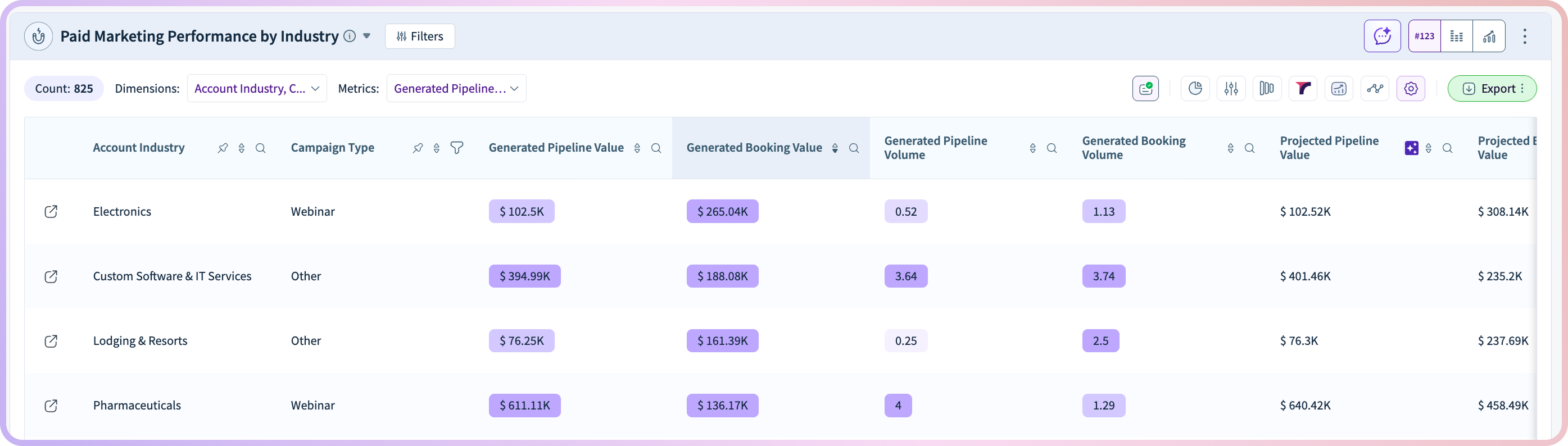 Teams can quickly understand which campaigns generate meaningful pipeline, how effectively spend converts into revenue, and how performance compares across channels. Instead of analyzing fragmented platform metrics, they gain a clear view tied directly to business results.